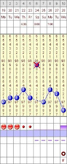 My temperature this morning was quite a bit lower than my temps have been so far. It's been awhile since I've had any temps below 97.0. Normally I probably wouldn't have even noticed a 0.2-0.4 degree fluctuation like I had today, but since my other temps have been so even, it's hard not to notice such a dip. I've always insisted that environment (using a heavier blanket, sleeping with windows open, etc) really didn't make that much of a difference in basal body temperatures, and up until this point it really hasn't seemed to make a difference. But then I have a temp like this morning's and I know for a fact that the windows were left open last night and when I woke up I felt physically cold, and it makes me wonder how much of a difference it really does make. 0.2-0.4 really isn't very much -- enough that I may not have noticed a real difference before, but it would be enough to make a difference in interpretation right around the time of ovulation.