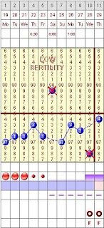 Cervical mucus is again creamy internally only, and cervix position is the same as well: firm, low, and partially open. I suppose consistency in these fertility indicators is a good sign as well.